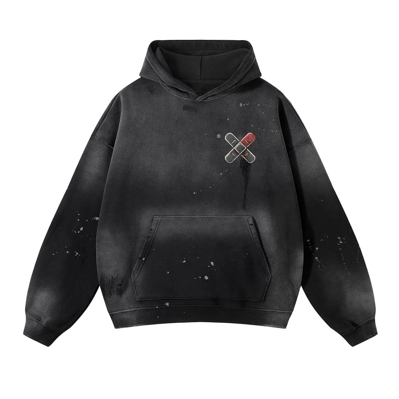 Vintage Wash Frayed Fleece Hoodie - 360 GSM